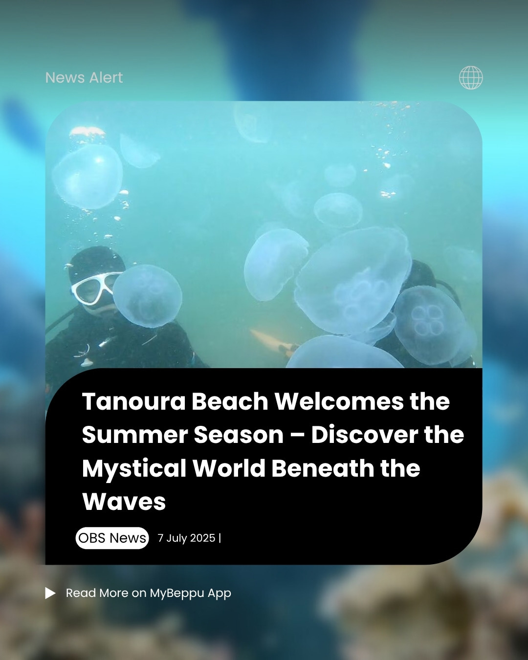 The full arrival of summer marks the beginning of beach season, and one of Oita City’s most beloved coastal spots is Tanoura Beach. While the surface offers sunshine and relaxation, just a little offshore lies a mysterious and beautiful underwater world waiting to be explored. On July 1st, Tanoura Beach officially opened for the season. It’s a popular destination for families and visitors, thanks to its easy access and scenic views. But there’s more beneath the surface—Tanoura is also one of Oita’s top diving spots. As you dive in, one of the first to greet you might be the Asian sheepshead wrasse, a friendly, 70 cm-long fish known for swimming right up to divers without fear. This time of year also brings a magical sight: swarms of moon jellyfish (mizukurage) drifting gently in the current. Experts say this seasonal phenomenon occurs when plankton levels rise, attracting jellyfish in search of food. From curious fish to jellyfish-filled waters, the ocean near Tanoura Beach is full of surprises—a side of this familiar beach that many have yet to see. It’s a perfect mix of adventure and natural wonder, right at the doorstep of Oita City.