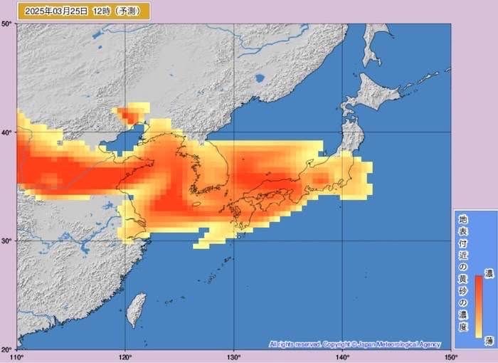 Kosa (yellow dust) expected across Kyushu Date: March 25–26, 2025 Kyushu will experience widespread dust storms starting early dawn on March 25th, continuing through the morning of March 26th. Please: • Wear masks outdoors. • Limit outdoor activities, especially for children and the elderly. • Keep windows and doors closed. • Stay hydrated.